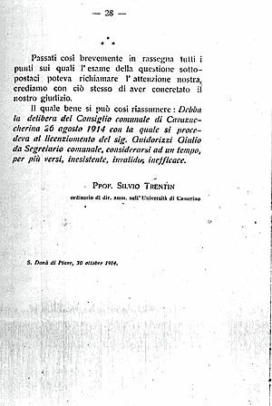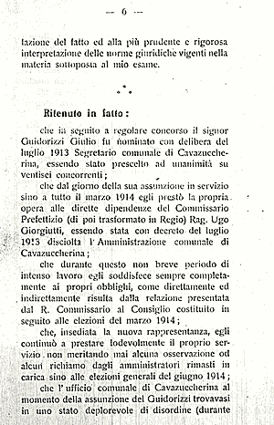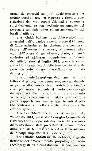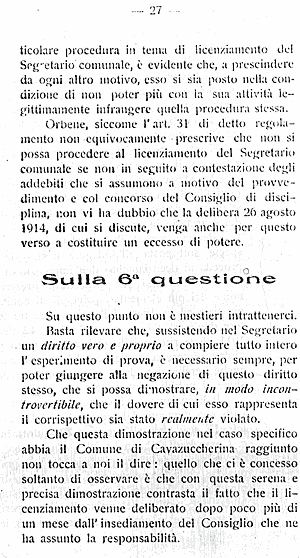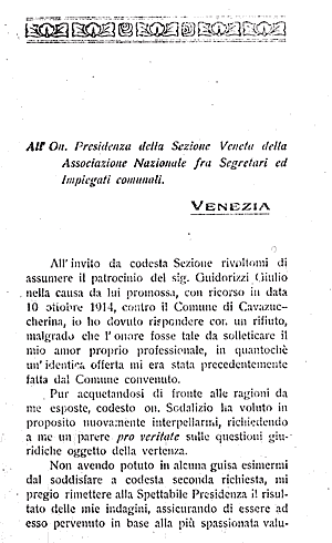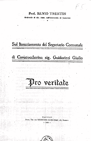 Sul licenziamento del Segretario Comunale di Cavazuccherina sig. Guidorizzi Giulio Pro Veritate