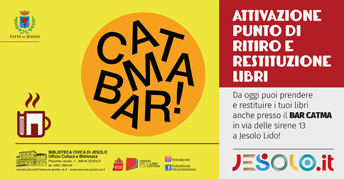 Per chi desidera prendere in prestito i libri della biblioteca civica di Jesolo, i gestori del Bar Catma, a seguito della sottoscrizione del patto locale per la lettura, si sono resi disponibili ad attivare un punto di ritiro e restituzione libri presso il loro esercizio commerciale. Il bar si trova in via delle Sirene 13 a Jesolo Lido.