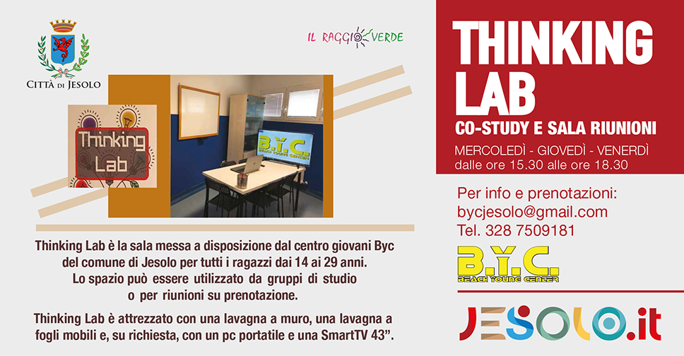 Thinking Lab è la sala messa a disposizione dal centro giovani BYC del Comune di Jesolo per tutti i ragazzi dai 14 ai 29 anni.