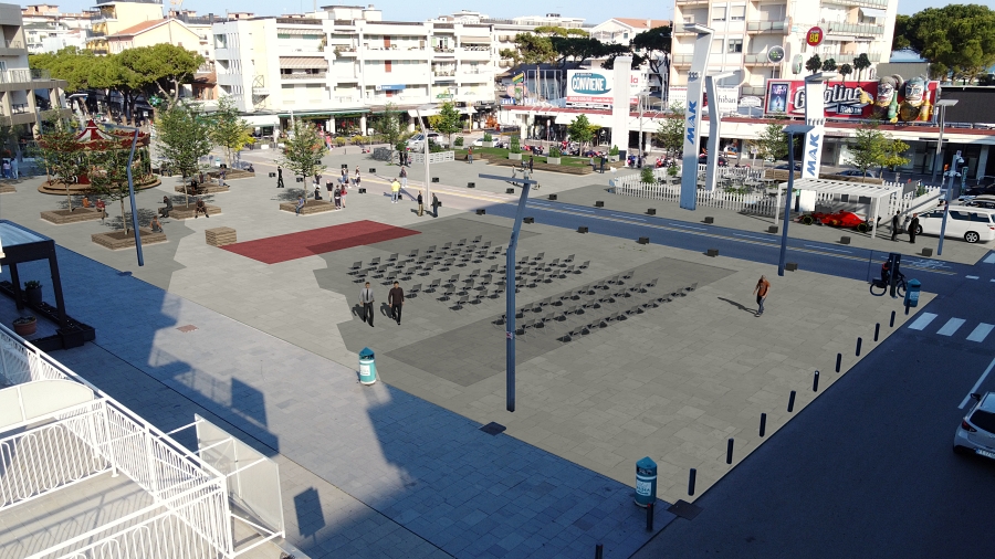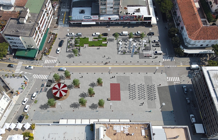 I lavori di miglioramento sono stati eseguiti secondo i principi di sostenibilità e compatibilità ambientale dettati dall’agenda 2030. La grande seduta in legno è stata trasformata in prato con decorazioni floreali, alberature e luci led in grado di cambiare colore a seconda delle situazioni e degli eventi che verranno realizzati in piazza durante la stagione estiva; poi isole verdi distribuite in maniera uniforme su gran parte dello spazio pubblico per creare un ambiente più vivibile e gradevole grazie all’inserimento di vasi con piante verdi, piccole aiuole con corteccia ed erba sintetica, elementi temporanei di arredo.