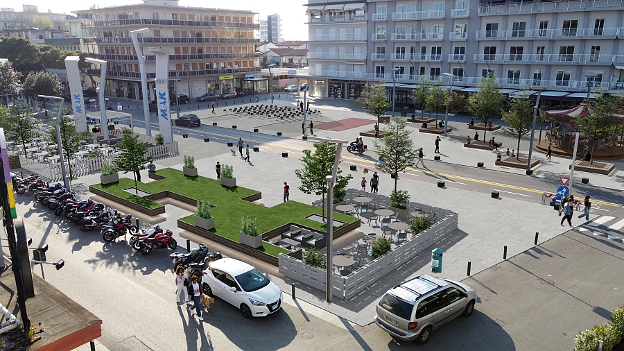 Piazza Mazzini, grazie alla sinergia messa in campo dall’amministrazione comunale e dal Comitato Mazzini nell’ambito del Distretto del Commercio del Litorale, è stata interessata dal progetto “Mazzini Green”, con l’obbiettivo di migliorare l’arredo urbano della piazza, rendendo lo spazio più fruibile e accogliente, nell’ottica di favorire anche l’opportunità di ampliamento dei plateatici dei pubblici esercizi durante l’estate.