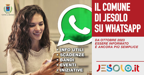 WhatsApp del Comune di Jesolo – Comunicazione Istituzionale è un canale di comunicazione gratuito grazie al quale i cittadine saranno sempre informati tempestivamente su scadenze, bandi, contributi, servizi sociali d’ambito Comunale, eventi.