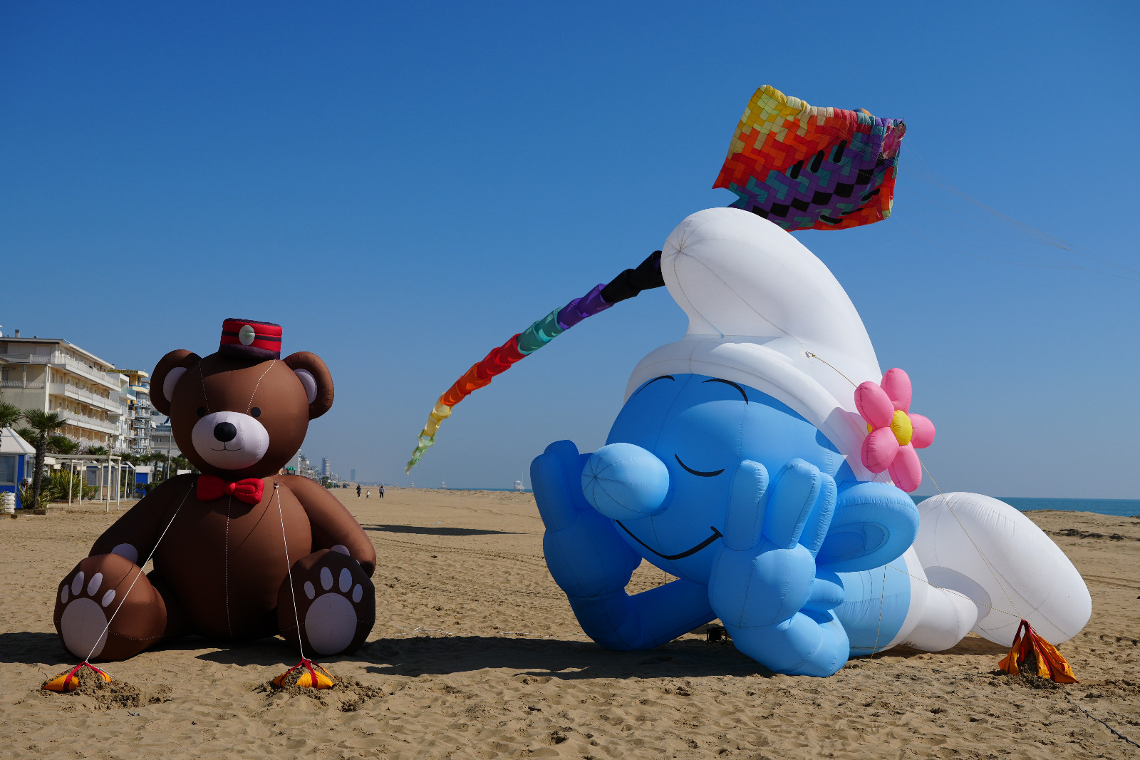 Domenica mattina vietato mancare all’appuntamento con il volo degli aquiloni statici tridimensionali giganti nelle arene adiacenti a quella centrale, a partire dalle ore 10.00, fra i quali balene lunghe 30 metri, piovre di 40 metri, mante giganti, ma anche simpatici personaggi dei cartoni animati e animali di tutti i tipi, oltre che ai complessi aquiloni steccati tridimensionali, costruiti con materiali tecnici come il carbonio e lo spinnaker. Subito dopo la premiazione del memorial Andrea Tauro al gruppo aquilonistico che più si sarà messo in mostra durante la manifestazione. Nel pomeriggio torneranno gli aquiloni acrobatici e ancora quelli statici tridimensionali giganti. A chiudere, alle ore 17.00, il volo del mega team di aquiloni acrobatici, dove campioni nazionali, europei e mondiali, si esibiranno volando tutti assieme contemporaneamente, a ritmo di musica, disegnando le forme più fantasiose nel cielo.