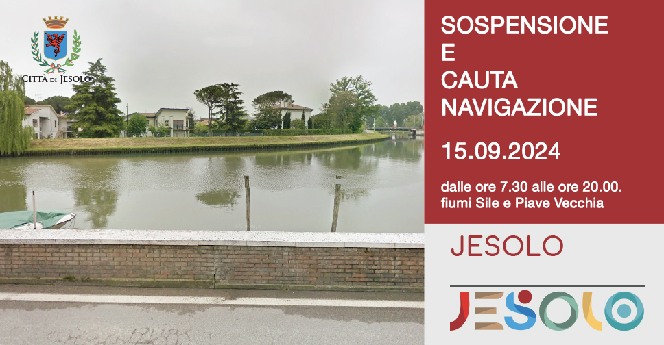 la SOSPENSIONE DELLA NAVIGAZIONE durante lo svolgimento delle regate e CAUTA NAVIGAZIONE durante le fasi di preparazione del campo di gara e tra una regata e l’altra, sui fiumi Sile e Piave Vecchia in Comune di Jesolo, dal ponte sulla SR 43 del Mare, per 2 Km verso monte, per lo svolgimento della manifestazione denominata: “Regata del Piave – XIII Edizione”, in data 15.09.2024, dalle ore 7.30 alle ore 20.00.