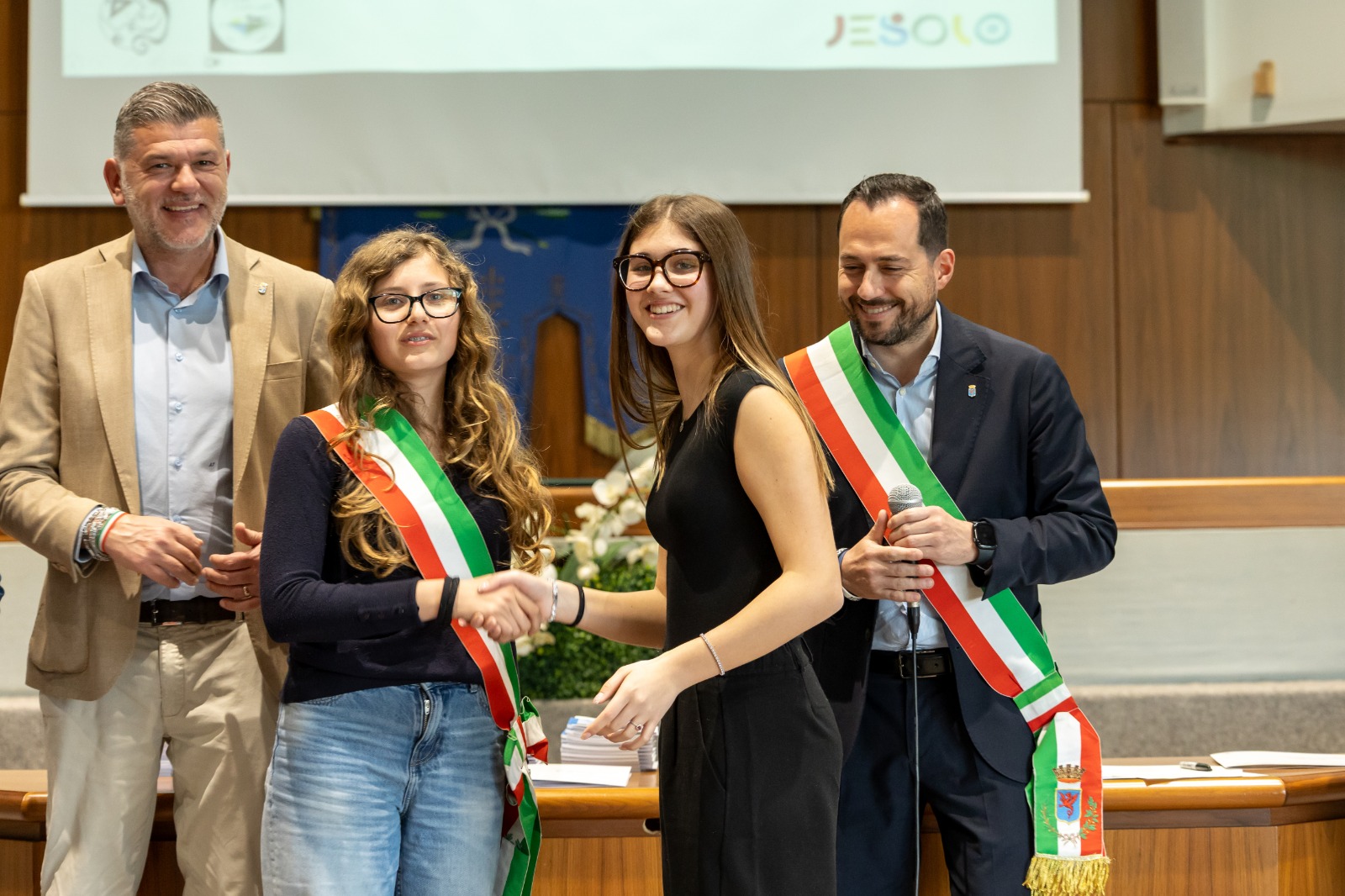 Al termine della seduta del Consiglio, si è svolta la cerimonia di passaggio di consegne tra la sindaca uscente Stella Zoccarato e la nuova sindaca. Un momento a cui hanno preso parte il sindaco di Jesolo Christofer De Zotti, l’assessore all’istruzione Debora Gonella e il presidente del Consiglio comunale Andrea Tomei.