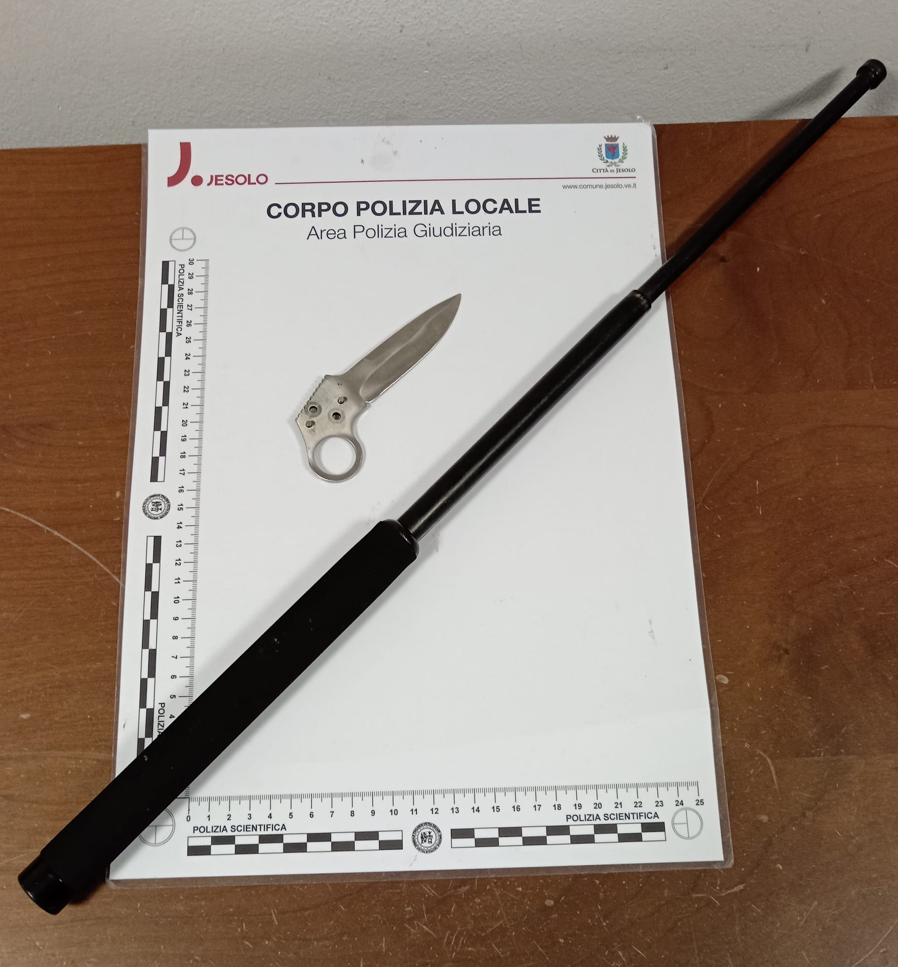 Giovedì 24 ottobre gli agenti della Polizia locale di Jesolo hanno provveduto alla denuncia di due uomini per il reato di porto di armi od oggetti atti ad offendere, avendo rinvenuto in loro possesso un coltello con lama di 9 centimetri e un manganello estensibile in metallo. I due oggetti sono stati trovati durante un’attività di ispezione del veicolo, una Fiat Punto, a bordo del quale viaggiavano i due uomini, entrambi 30enni di nazionalità straniera. Il fermo del mezzo è avvenuto verso le ore 17.40 in zona est del lido nel corso della programmata attività di controllo del territorio. Da accertamenti emergeva che lo stesso era scoperto da copertura assicurativa e a bordo era presente una targa prova in corso di validità ma senza valida delega di utilizzo sul veicolo fermato. I successivi controlli rilevavano diverse violazioni relative proprio all’utilizzo della targa prova da parte dei due soggetti. Per tali ragioni, gli agenti hanno proceduto alla contestazione della violazione al codice della strada con applicazione della sanzione accessoria del sequestro del veicolo per confisca. Durante la successiva ispezione del mezzo sono stati infine rivenuti il coltello e il manganello estensibile per il possesso dei quali i due uomini sono stati denunciati.