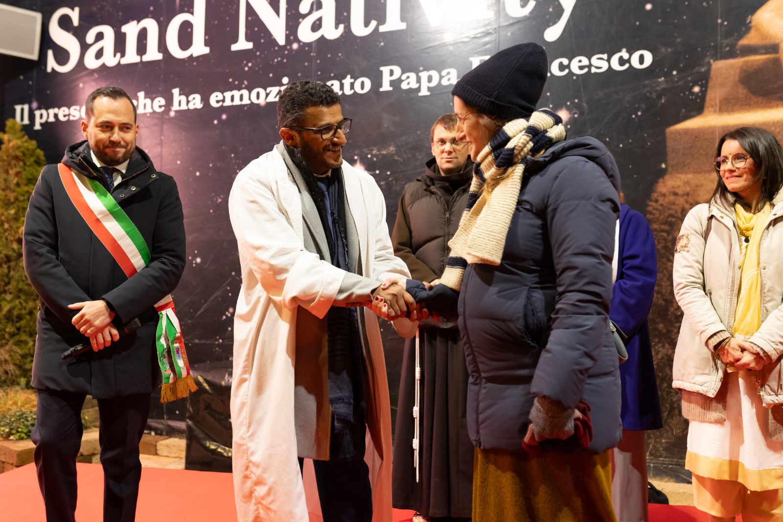 Si è svolta ieri l’inaugurazione della 23esima edizione dello Jesolo Sand Nativity, il celebre presepe di sabbia di Jesolo che quest'anno è ispirato al "Cantico delle creature" di San Francesco in occasione delle celebrazioni per gli 800 anni dalla sua stesura. La cerimonia ha visto la partecipazione dei rappresentanti delle 5 maggiori tradizioni religiose: fra Diego Taddei per tradizione cristiana, Miriam Camerini per quella ebraica, Hamdan Al Zeqri per la tradizione musulmana, Gigliola Sartor per l’induista e Maria Angela Falà per la tradizione buddhista. Accanto a loro, insieme al sindaco Christofer De Zotti e al presidente del Consiglio comunale Lucas Pavanetto, anche gli studenti delle classi quinte del liceo classico linguistico “Eugenio Montale” di San Donà di Piave e dell’istituto alberghiero “Elena Cornaro” di Jesolo.