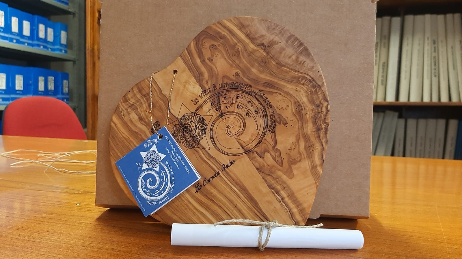 L’oggetto, simbolo di buon auspicio e di unione, è frutto del lavoro delle persone con disabilità che partecipano ogni giorno alle attività della Onlus. Ogni creazione è unica, realizzata con cura e passione, testimoniando il significato profondo del dono.