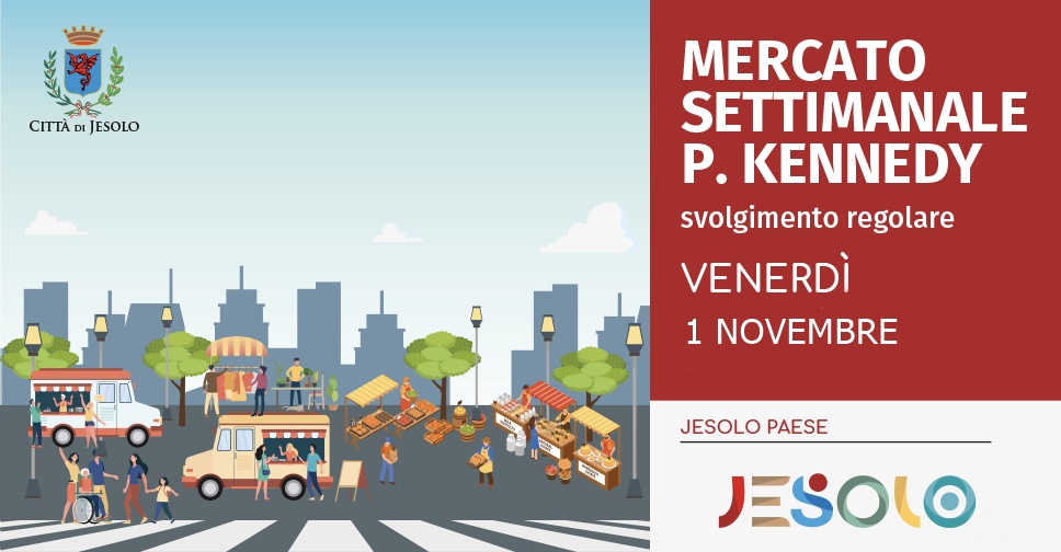 Venerdì 1° novembre 2024, giornata festiva, il mercato settimanale di Jesolo Paese in piazza Kennedy si svolgerà regolarmente.