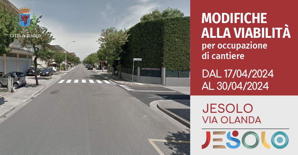 L'Amministrazione comunale informa che, dal 17 al 30 aprile, via Olanda in corrispondenza dell'ex hotel Jadran sarà occupata da un cantiere.