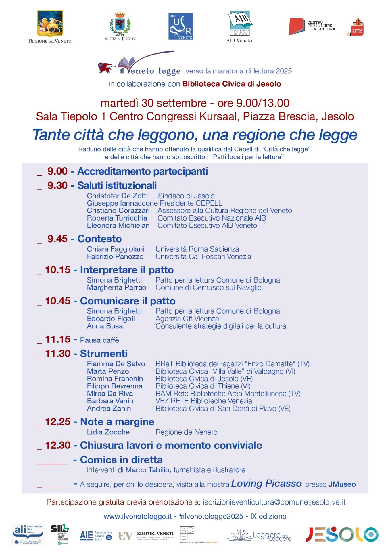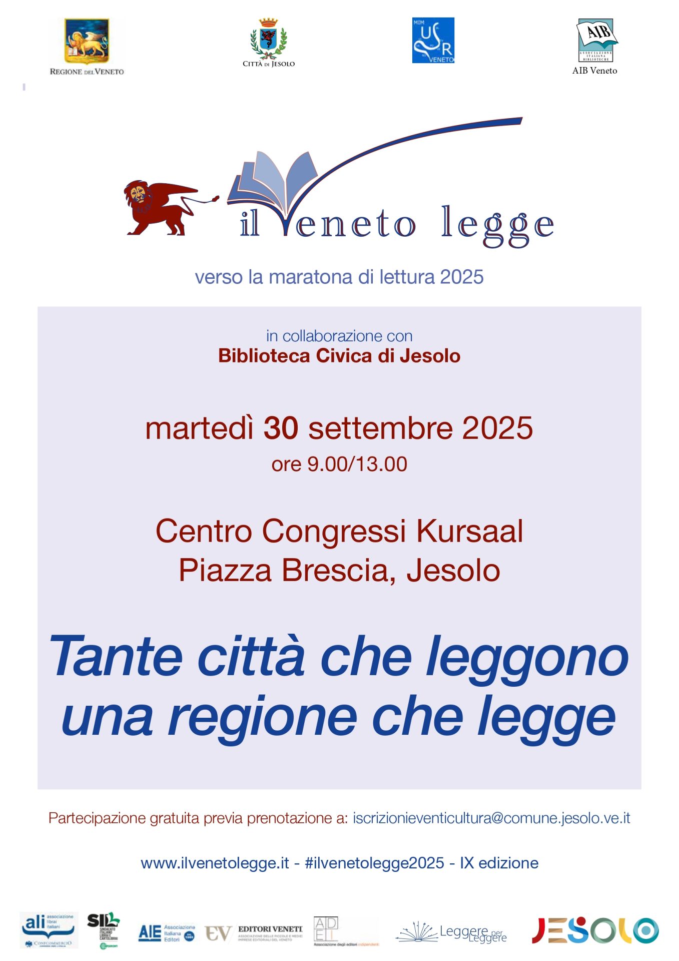 Accanto ai promotori istituzionali, l’incontro vedrà anche la partecipazione delle principali sigle associative del settore: Associazione Editori Veneti, Adei Veneto, AIE, ALI, SIL e Leggere per leggere, a testimonianza di un impegno corale che mette in rete biblioteche, scuole, amministrazioni locali, editori e librai.