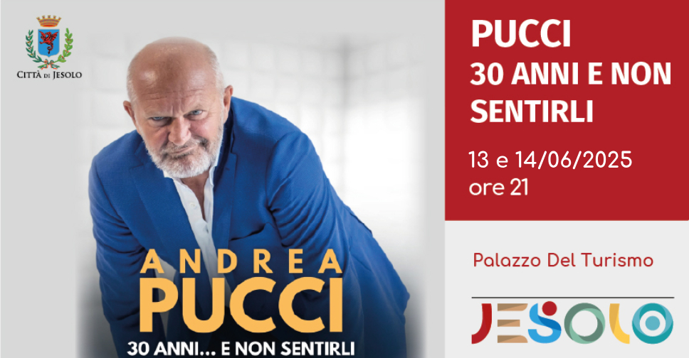 Pucci porterà a Jesolo il suo nuovo spettacolo "30 anni... e non sentirli". Alla data di venerdì 13 giugno si aggiunge a grande richiesta una nuova replica in programma sabato 14 giugno.