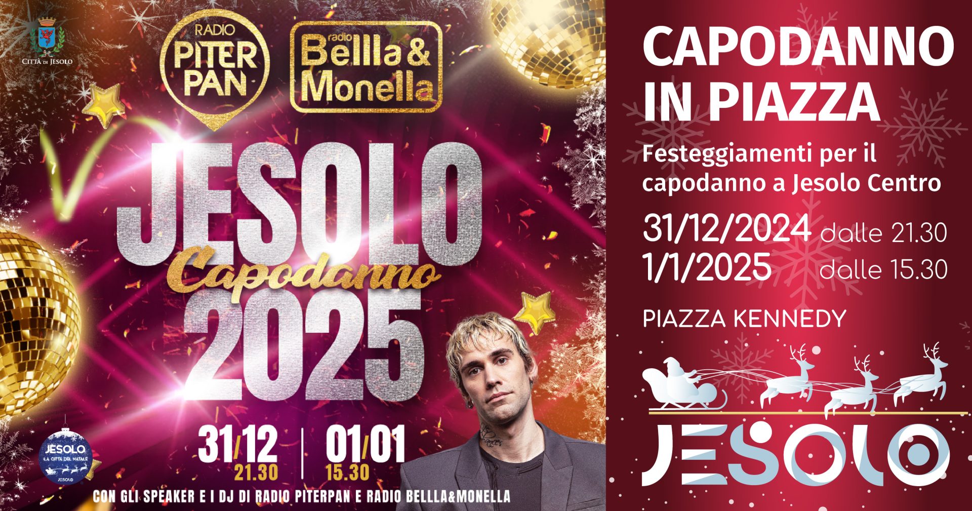 I festeggiamenti iniziano la sera del 31 dicembre in Piazza Kennedy alle 21:30 con Jovasafari che ripercorre i grandi successi di Lorenzo Jovanotti, gli interventi dei dj e degli speaker di radio Piterpan e radio Bellla&Monella e, ad accompagnare il brindisi di mezzanotte, l'immancabile spettacolo pirotecnico che accoglie il nuovo anno!