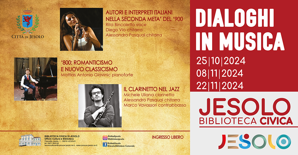 Prenotazione consigliata scrivendo a serviziculturali@comune.jesolo.ve.it
