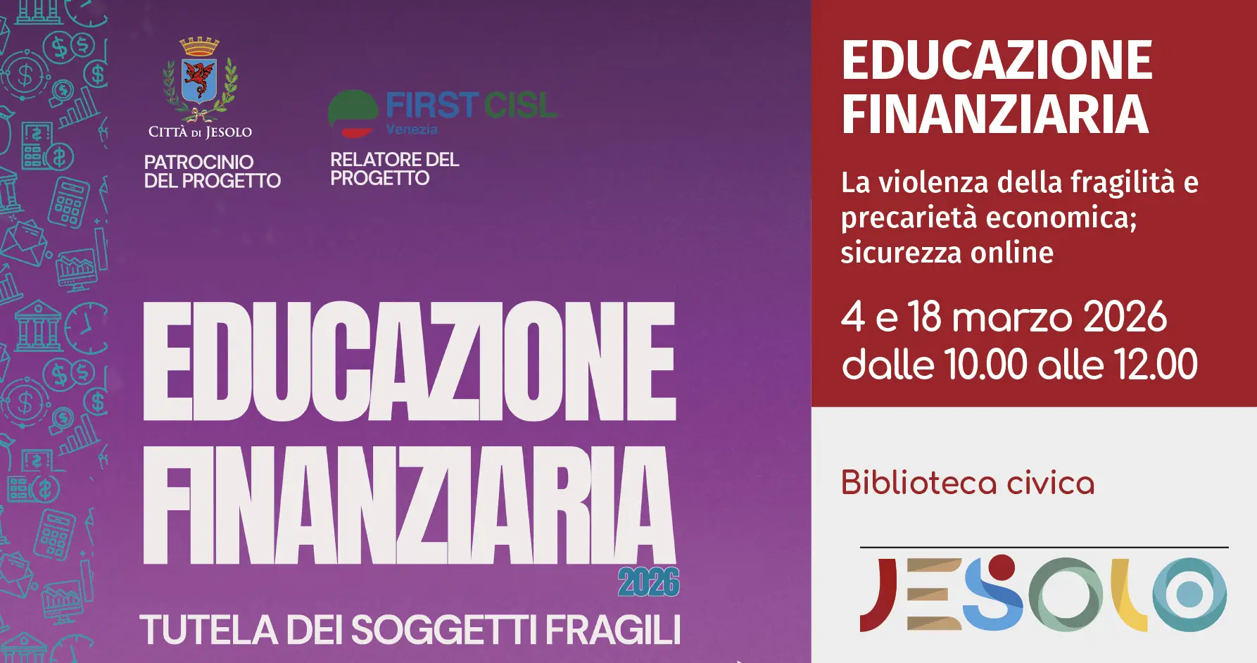 L’Amministrazione comunale è lieta di presentare un percorso formativo dedicato all’educazione finanziaria e alla tutela dei soggetti fragili. L’iniziativa si articola in due appuntamenti volti a fornire strumenti concreti per la prevenzione della violenza economica e la difesa contro le minacce del mondo digitale.
