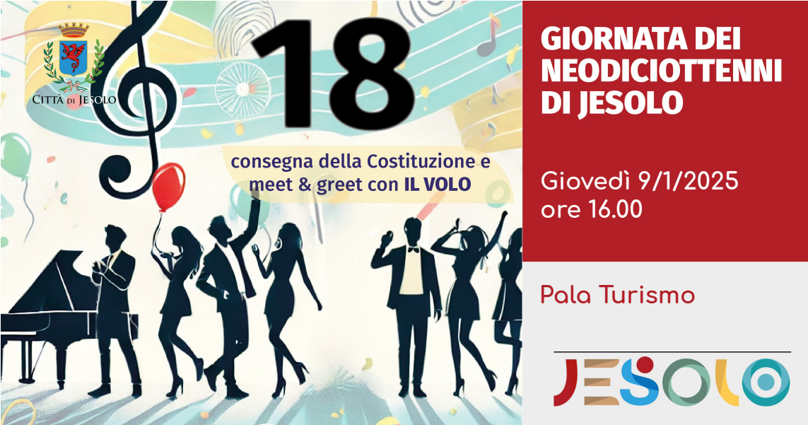 La Città di Jesolo organizza una cerimonia ufficiale per celebrare l'ingresso nella maggiore età di tutti i ragazzi che compiono 18 anni nel 2025.