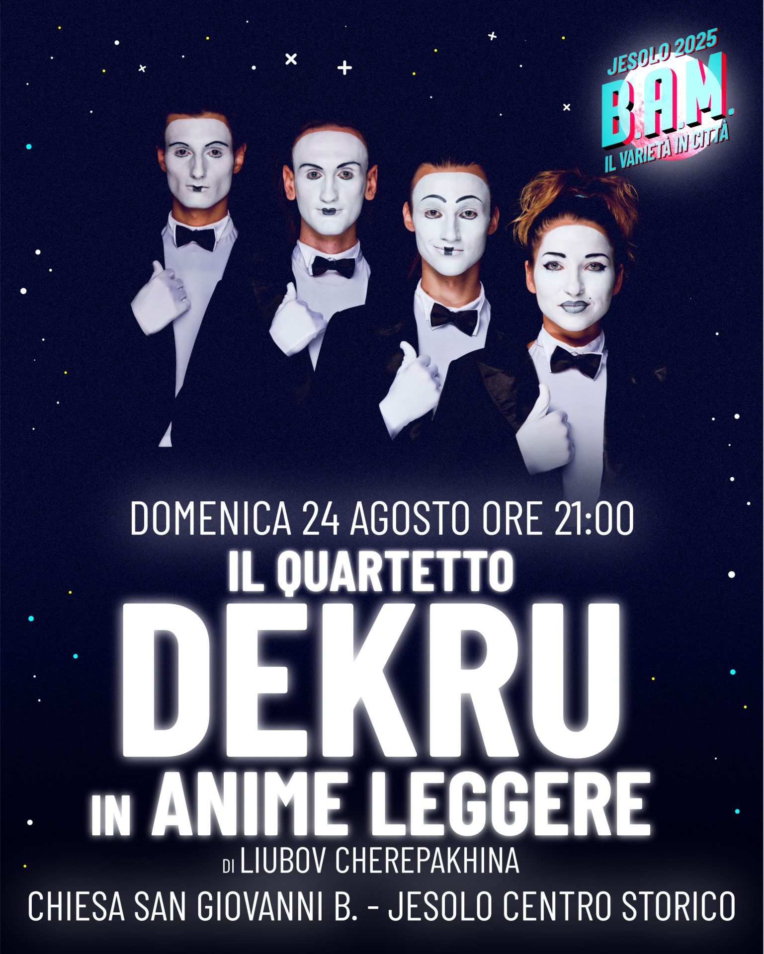 Eredi spirituali di Marcel Marceau, i Dekru sono un pluripremiato quartetto di mimi ucraini che ha riscosso grandissimo successo nel mondo, conquistando tanto i palcoscenici più prestigiosi quanto le vaste platee di programmi TV.