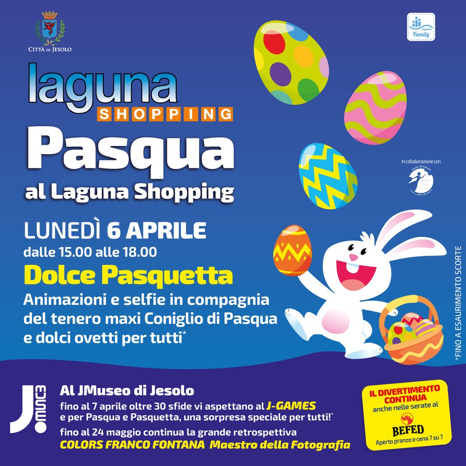 Cos'è Lunedì 6 aprile, dalle ore 15.00 alle ore 18.00, animazioni e selfie in compagnia del tenero maxi coniglio di Pasqua e dolci ovetti per tutti*. *Fino ad esaurimento scorte