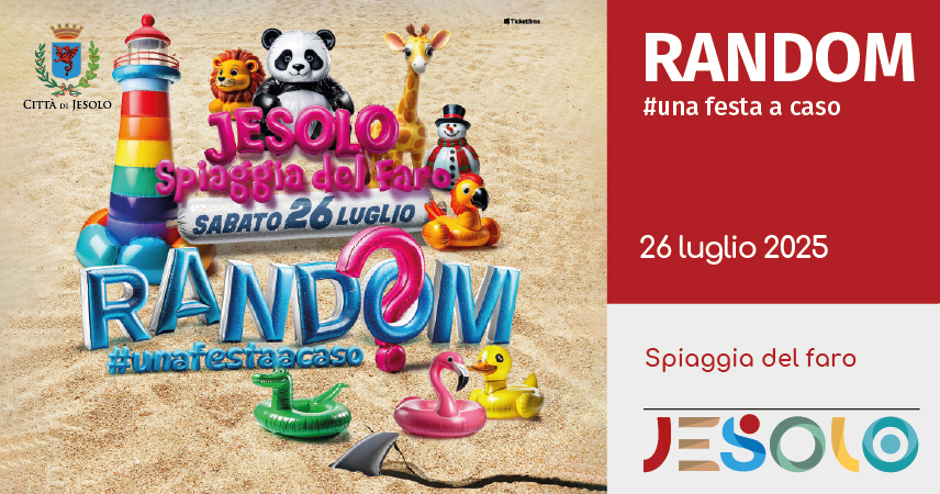 Sabato 26 Luglio, nella magnifica cornice della Spiaggia del Faro di Jesolo, torna la festa in spiaggia più grande d’italia: RANDOM, una festa a caso!