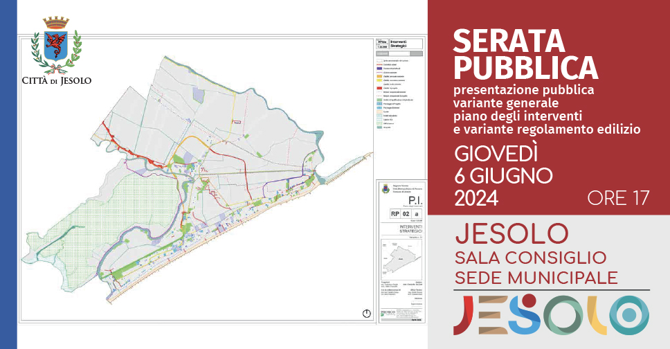 Giovedì 6 giugno 2024 alle ore 17, presso la sala Consiglio del Municipio, l'amministrazione Comunale incontra i professionisti e le categorie, per presentare la Variante generale al Piano degli Interventi e al Regolamento edilizio