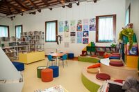 La sala bimbi e ragazzi si trova al primo piano della biblioteca, accessibile anche tramite ascensore.
